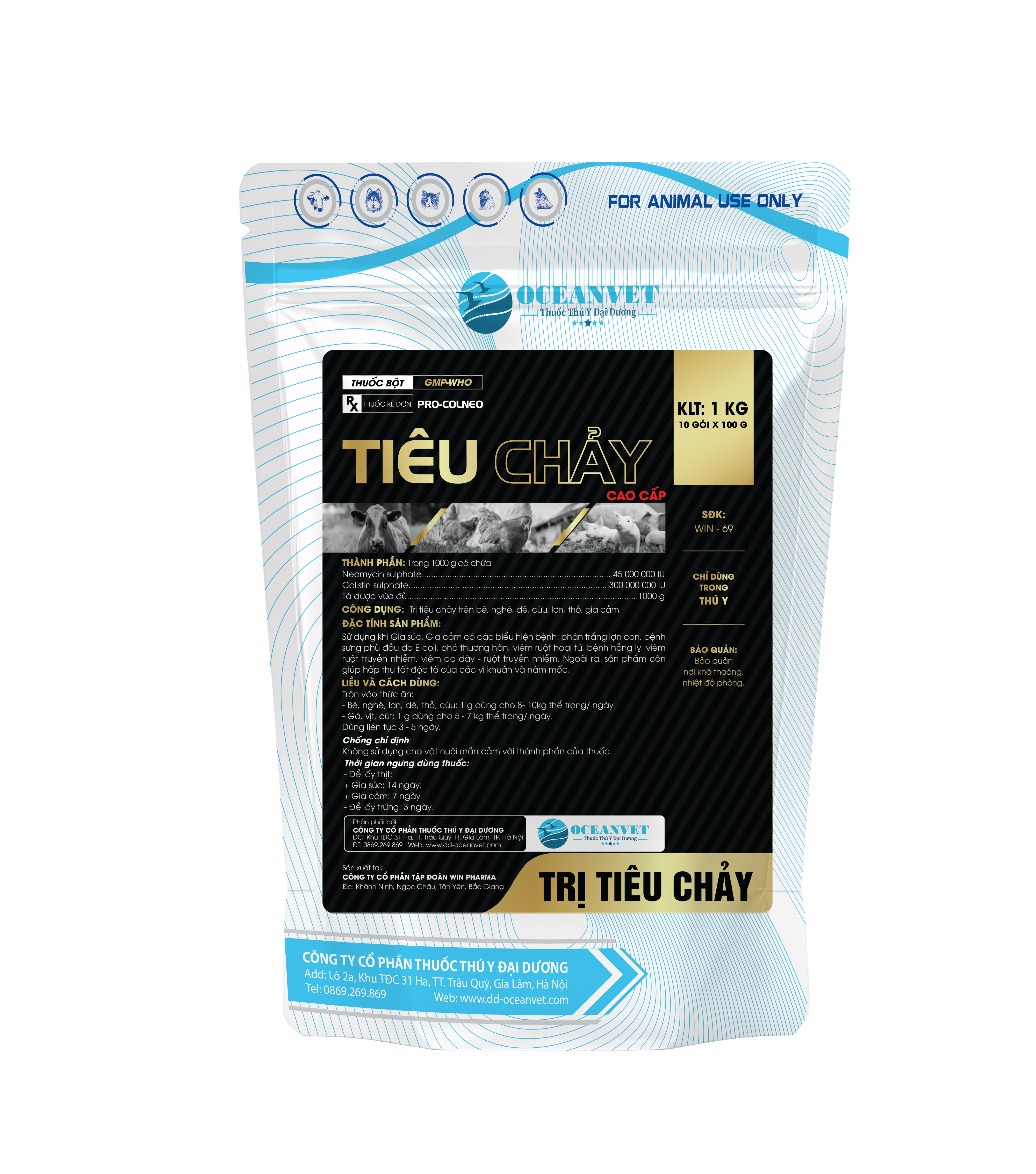 TIÊU CHẢY CAO CẤP là sản phẩm thuốc thú y đặc trị các bệnh đường ruột do E. coli, Salmonella, Clostridium, vi khuẩn và nấm mốc gây ra, được bào chế với công thức tối ưu từ Neomycin và Colistin sulphate – hai kháng sinh mạnh, hiệu quả cao trong điều trị viêm ruột, phó thương hàn, hồng lỵ và phân trắng.