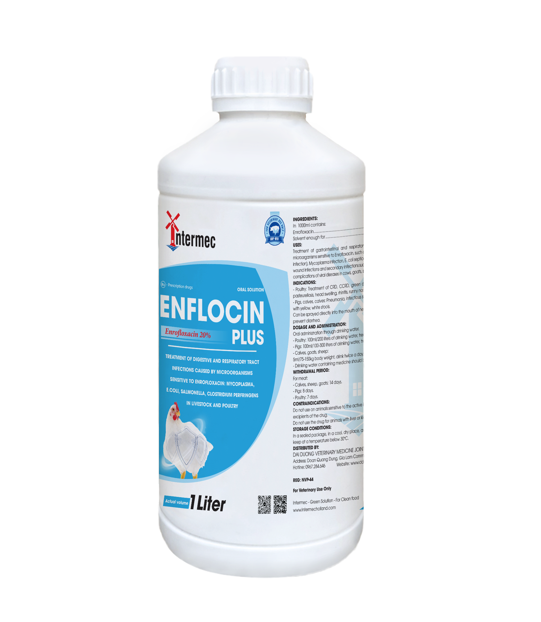 Các nguyên liệu được sử dụng trong sản phẩm này được phép sử dụng làm thức ăn chăn nuôi theo quy định của Bộ Nông Nghiệp Và Phát Triển Nông Thôn, gồm có: Tinh chất than hoạt tính, Lysine tổng số, Beberin, Bacillus clausi, Mộc hoa trắng (Holarrhena pubescens), Cỏ sữa (Euphorbia thymifolia), Xuyên tâm liên (Andrographis paniculata), Nhọ nồi (Eclipta prostrata), Bồ công anh (Lactuca indica), Chiêu liêu (Lactuca indica), Mộc hương (Saussurea costu), glucose